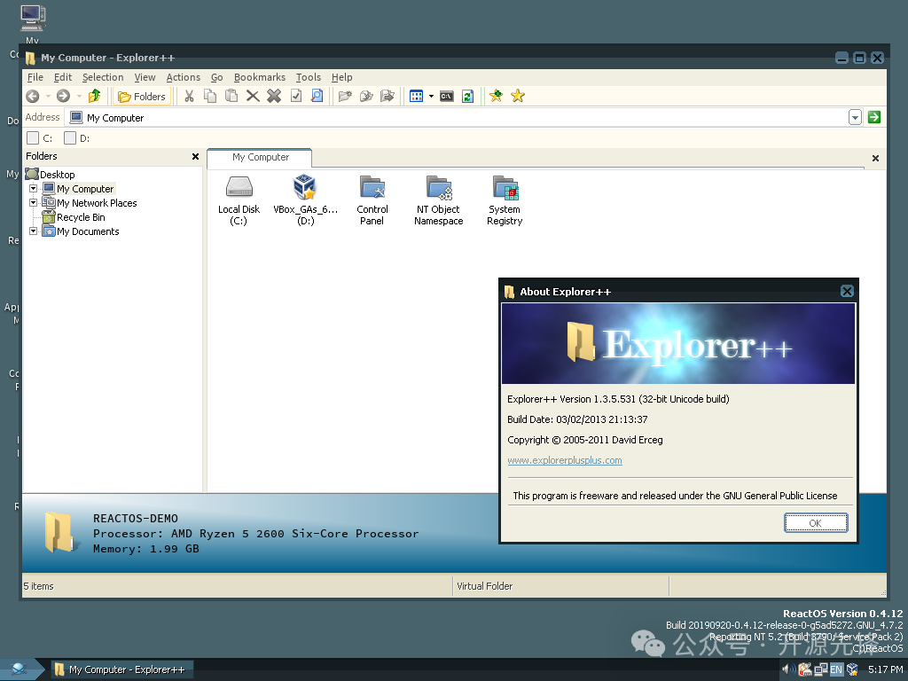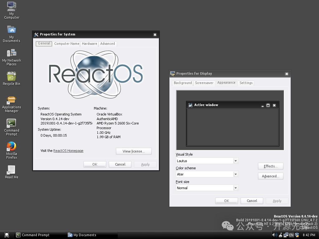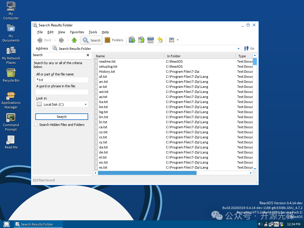 快速安装使用如果想体验一下ReactOS,过程其实非常简单,可以使用Vmware来安装它。 首先去ReactOS官网(https://reactos.org/)下载最新的ISO镜像文件。 创建一个虚拟机,然后在启动虚拟机时指定ReactOS的iso文件,接着按照提示一步步安装就可以了。安装过程非常直观,即使是新手也能轻松搞定。 项目展示