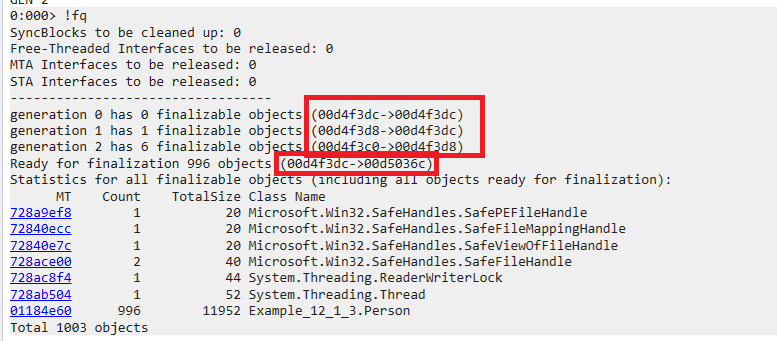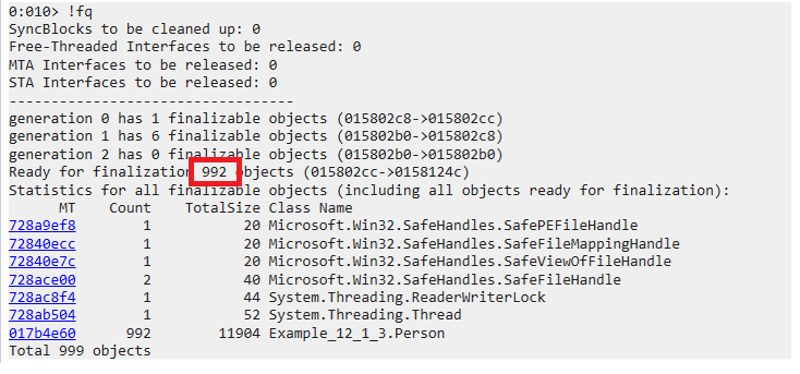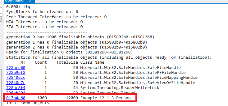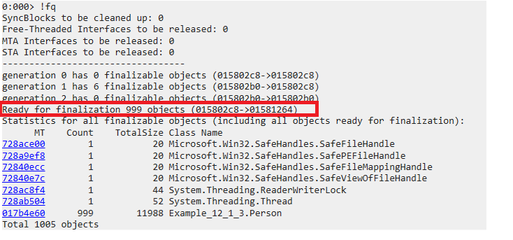 可以看到代码中创建的1000个Person的析构函数已经进入了F-Reachable queue