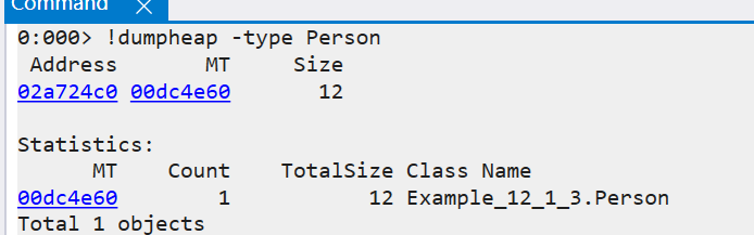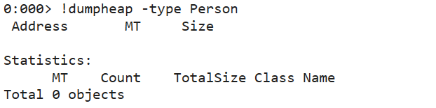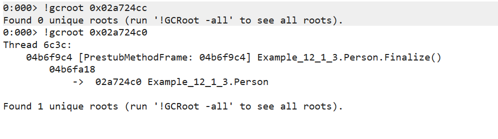 可以看到,Person2对象因为被回收而在托管堆中找不到了,Person对象因为还未执行析构函数,所以还存在gcroot 。因此并未被回收,且内存代从0代提升到1代