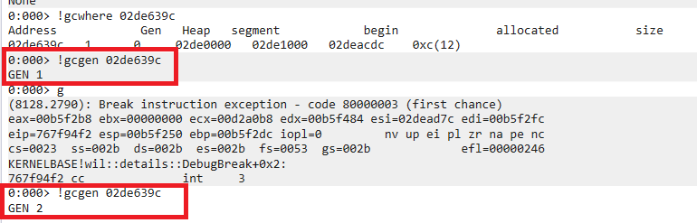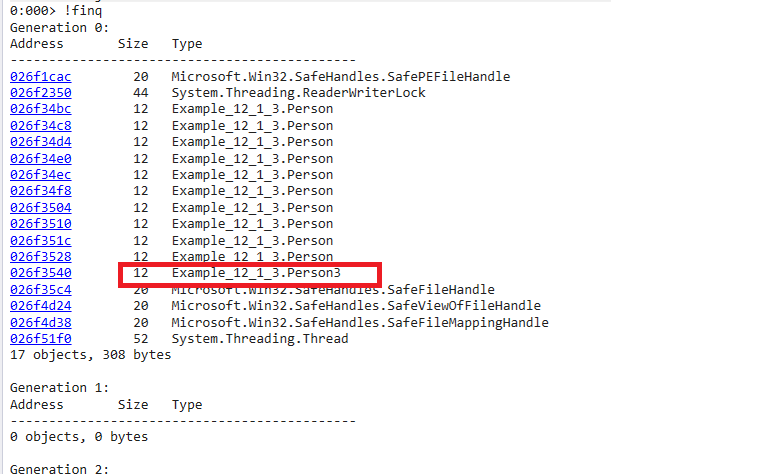 可以看到所属代都为0,且托管堆中都能找到它们。