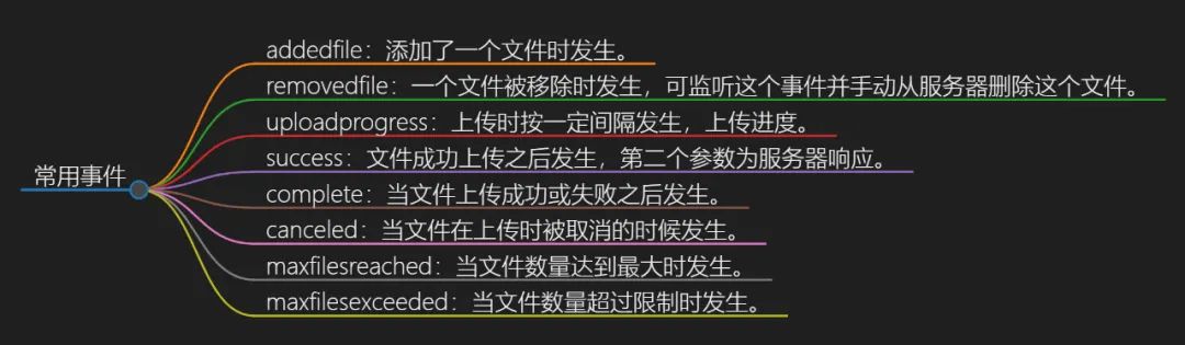 为 Dropzone 对象添加事件监听器,以便处理文件上传过程中的各种事件,如文件添加、上传成功、上传失败等。