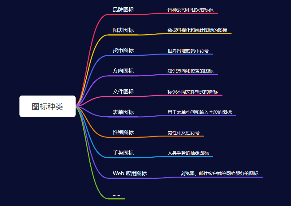 Font awesome 6 中提供了多达 68 种分类,涵盖了 Web 设计和开发的许多方面,可以满足各种需求。常见的类别。