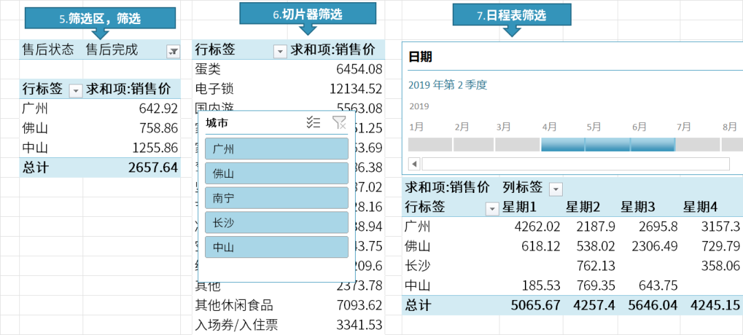 每种筛选都有其中的妙用,也有不少情况筛选功能是重合的,个人最喜欢是切片器、日程表筛选功能。