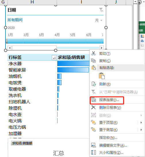日程表也可以选择【报表链接】,链接多个数据透视表或透视图。