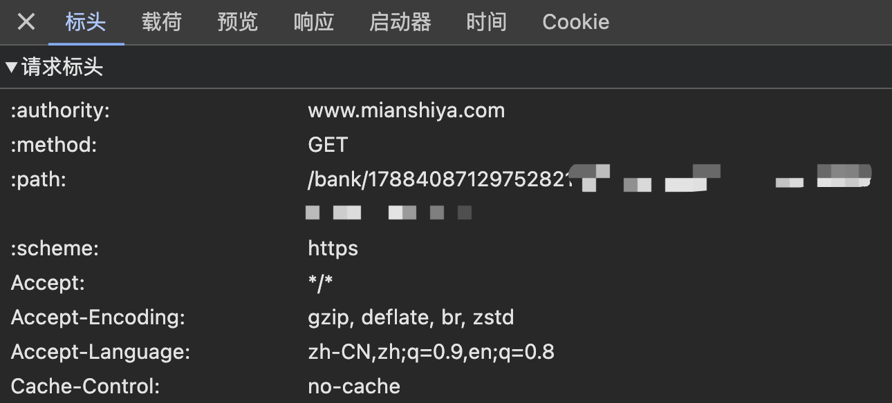 当然,这招只能防防菜鸟,因为请求头是可以很轻松地伪造的,只要通过浏览器自带的网络控制台获取到响应正常的请求头信息,就可以绕过检测了。