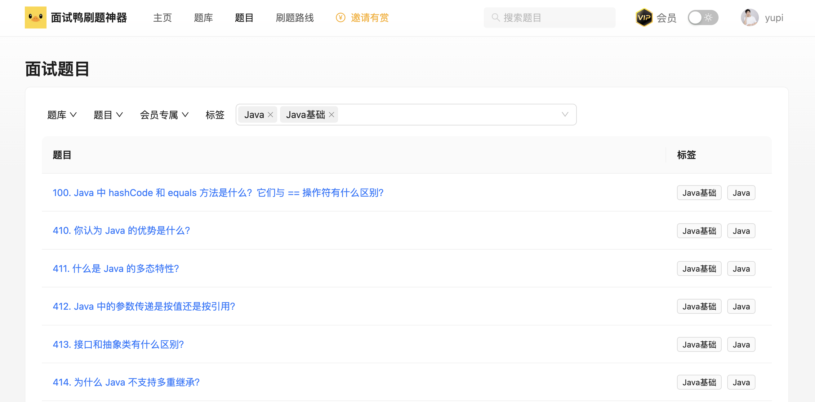 用到爬虫场景上,我们的做法是,不做任何限制,直接让所有人不登录也能查看到我们网站的题目数据!而且还提供了题目的各种筛选功能、收藏功能。大多数同学只是为了自己学习,这样一来,就没有必要花时间去爬数据了~