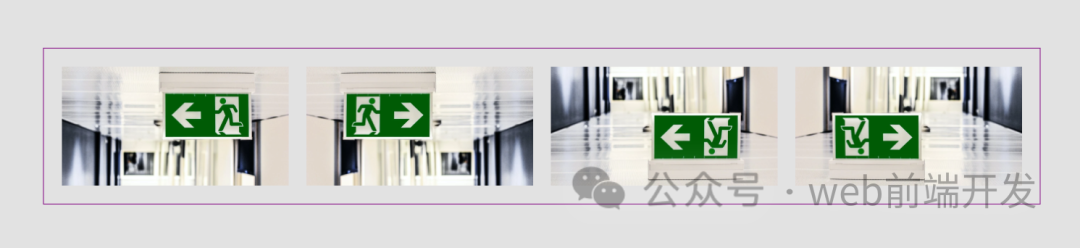 在下面的示例中,你可以看到同一张图像重复了四次。从第二张图像开始,使用 CSS 以各种方式翻转图像。