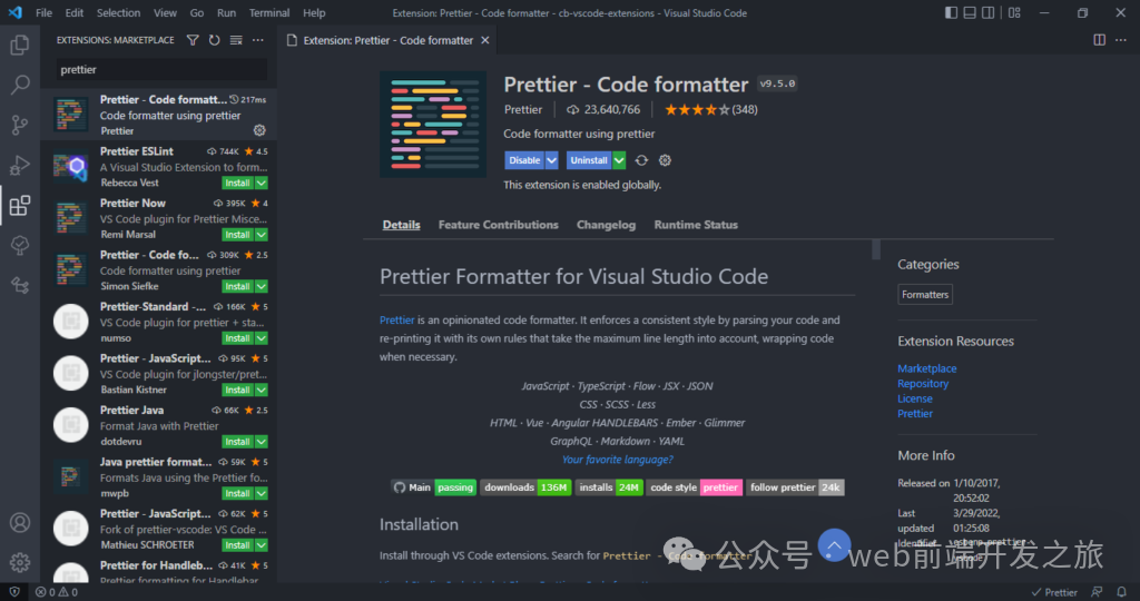 Visual Studio Code 的 Prettier 扩展实现了代码编辑器和 Prettier 之间的无缝集成,允许您使用键盘快捷键轻松格式化代码,或在保存文件后立即设置代码格式。