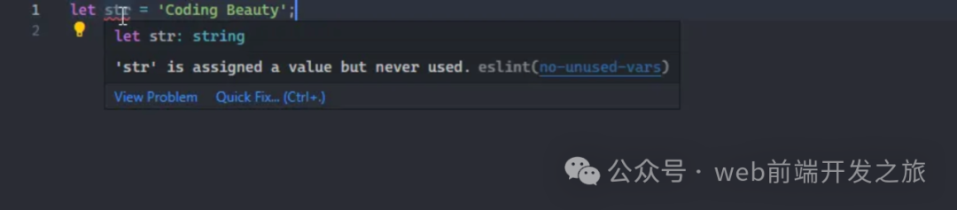 Visual Studio Code 的 ESLint 扩展支持 ESLint 和代码编辑器之间的集成。这种集成允许 ESLint 直接在编辑器中通知你问题。