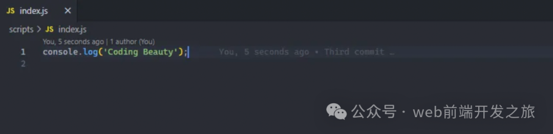 将光标放在编辑器中的任意行上,GitLens 将显示该行被更改的最新提交的信息: