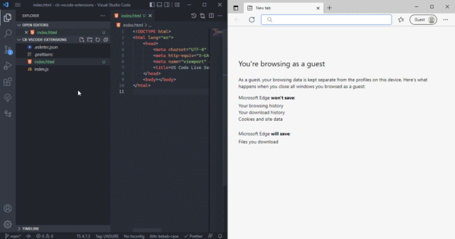 VS Code 的 Live Server 扩展启动一个本地服务器,该服务器使用工作区中的文件内容为页面提供服务。当关联文件发生更改时,服务器将自动重新加载。