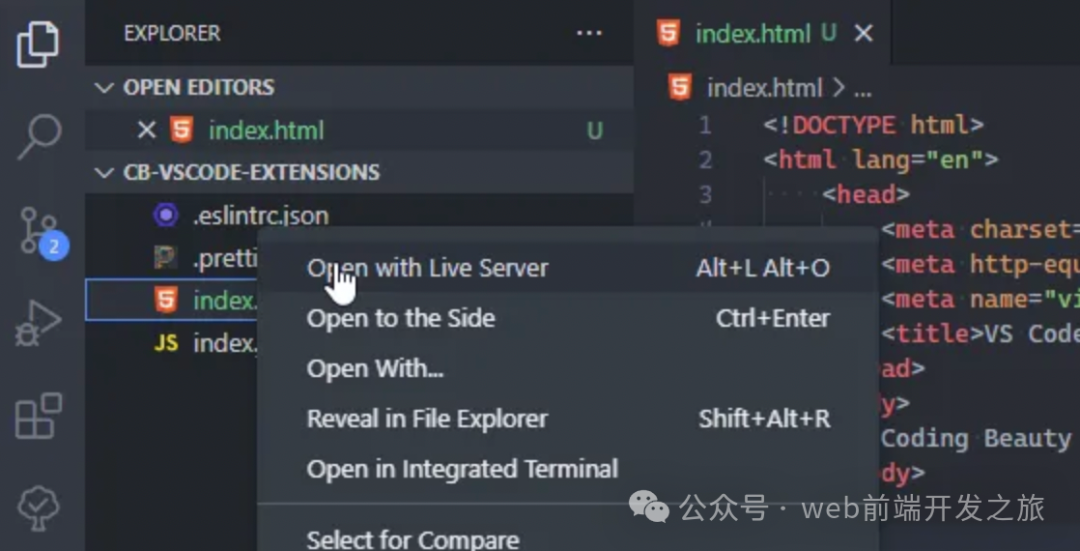 正如您在演示中看到的,您可以使用 VS Code Explorer 中文件的右键单击上下文菜单中的 Open with Live Server 项轻松启动新服务器。