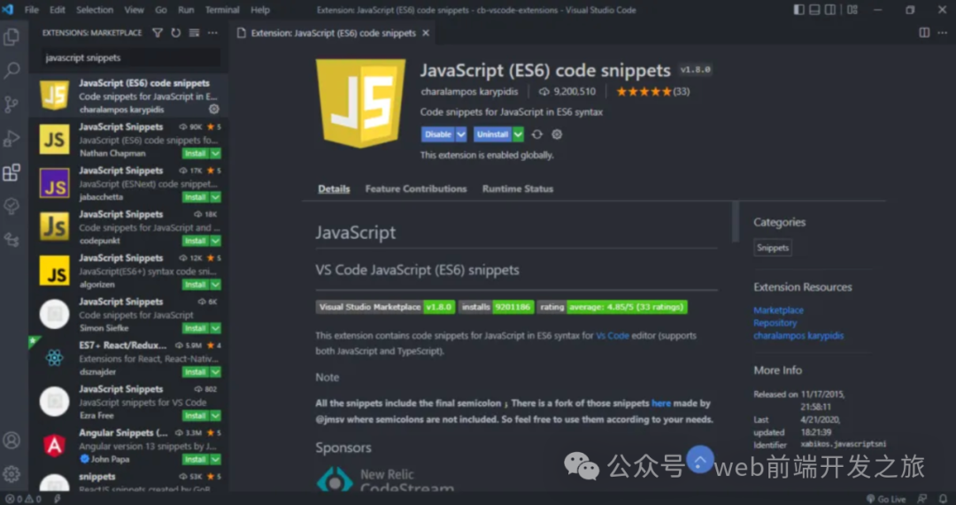 顾名思义,这是一个扩展,它以 ES6 语法完全加载了大量节省时间的 JavaScript 代码片段。