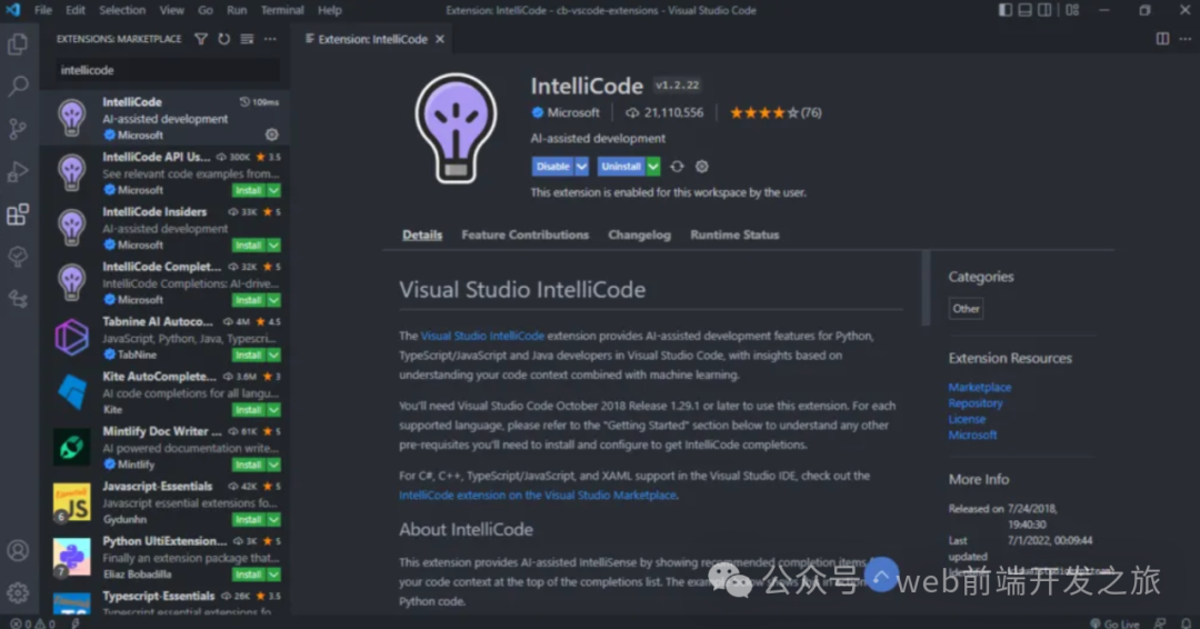 IntelliCode 可用于 JavaScript、TypeScript、Python 和其他几种语言。