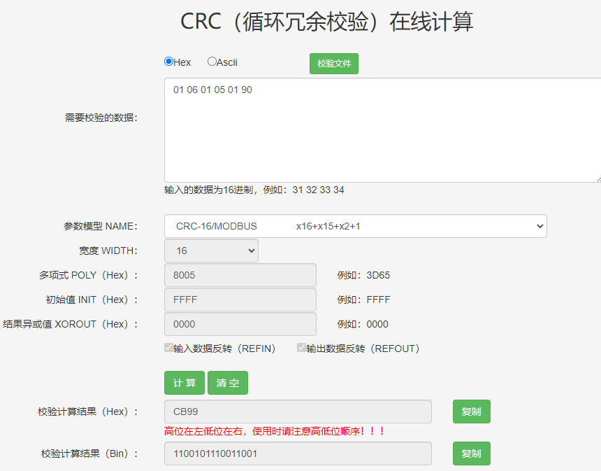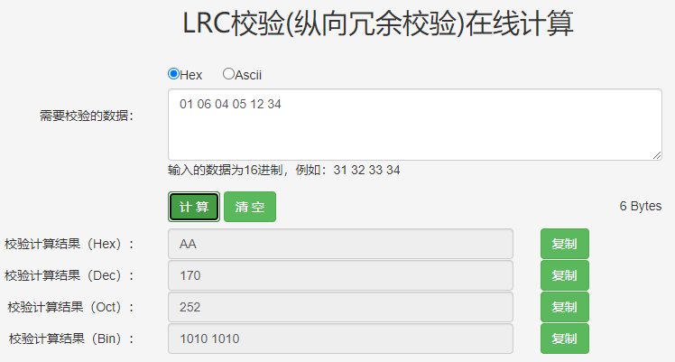 附:LRC校验(纵向冗余校验)在线计算地址:http://www.ip33.com/lrc.html