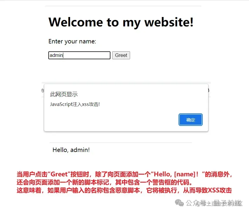 当用户访问包含这个留言的页面时,就会弹出一个提示框内,从而执行恶意代码。