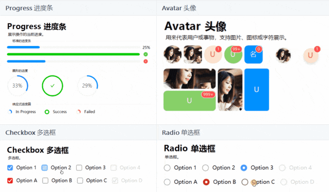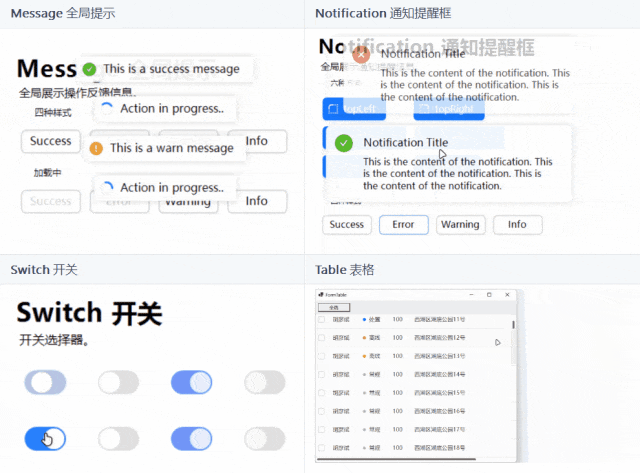 - 丰富的组件集合:提供多种常用的 UI 控件,如按钮、表格、表单、导航栏等,便于快速构建功能完善的用户界面。