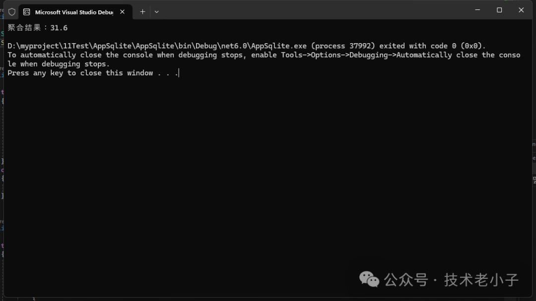 // 聚合查询 Console.WriteLine("\n用户平均年龄:"); SelectWithAggregation(connection, "Users", "AVG(Age)");