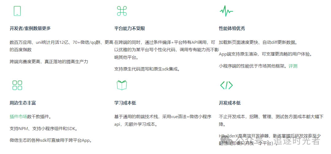 uni-app在开发者数量、案例、跨端抹平度、扩展灵活性、性能体验、周边生态、学习成本、开发成本等8大关键指标上拥有更强的优势。