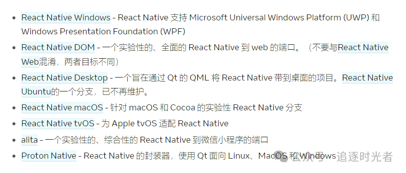 React Native不仅适用于 Android 和 iOS - 还有社区支持的项目将其应用于其他平台,例如: