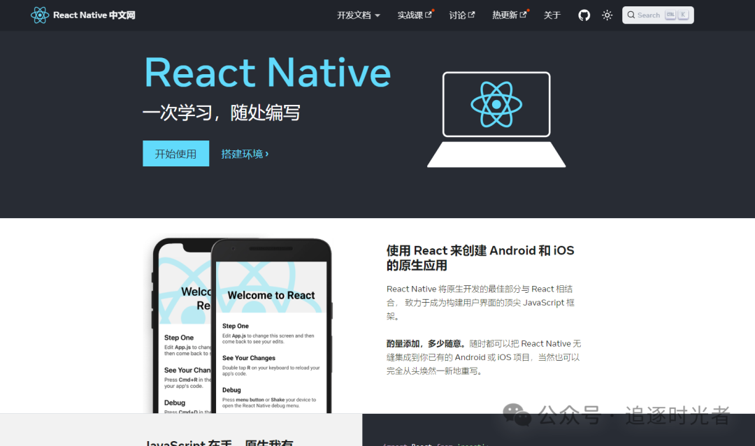React Native由Facebook开发,允许开发者使用JavaScript和React来构建原生体验的移动应用,支持iOS和Android平台。