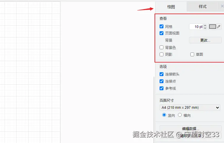 建议可以先关闭网格和页面视图这两个选项,这样页面就显示为无限大的画布了,且背景不再显示网格。此外,还可以勾选背景色选项,并自定义背景颜色。