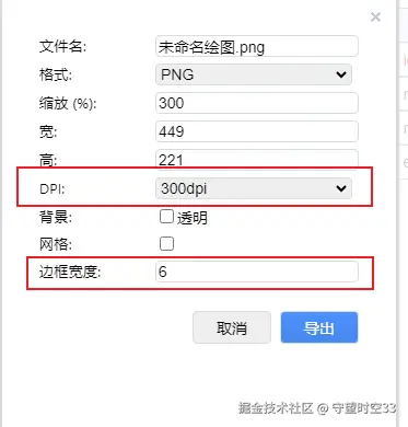 建议将DPI调整为300,并保留一定的边框宽度,这样导出的图片清晰度就比较好,且会保留一部分边缘: