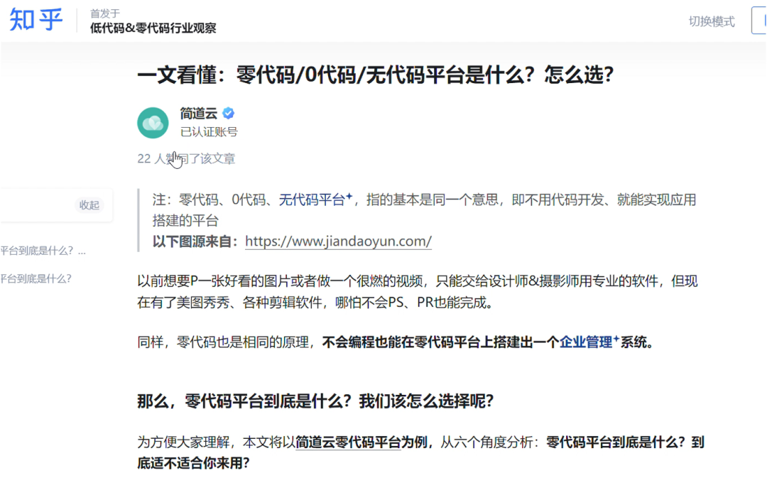 另外帆软在SEO(搜索引擎优化)上做的不错。简道云官网有关键词排名的页面是友商的3倍左右。在百家号、知乎上也有大量的内容为官网贡献流量和线索。当然也可以提升品牌知名度。