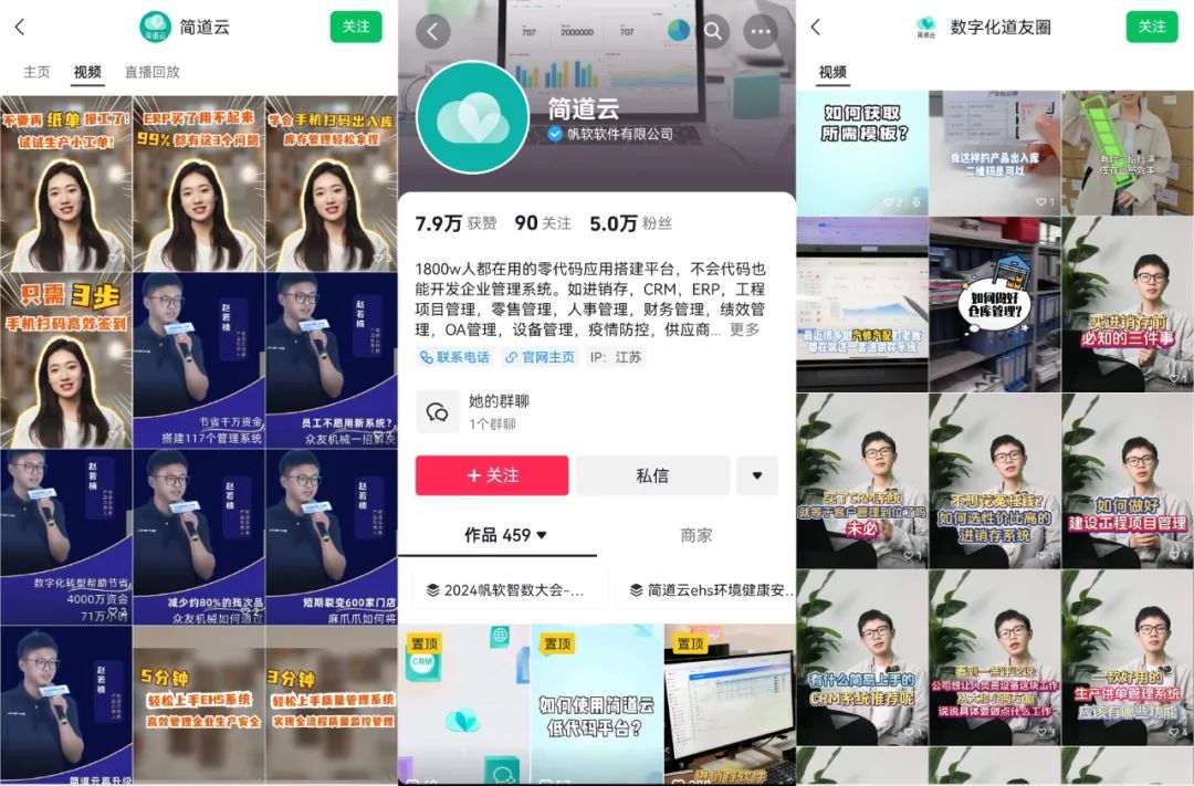 所以从目前收集的信息来看:简道云主要的线上获客渠道包括百度等搜索广告投放、网站SEO和站外的百家号和知乎、微信公众号内容营销、短视频营销,还有小红书图文营销。