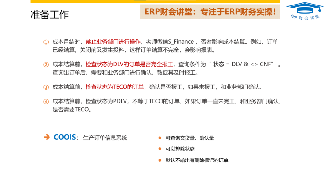 [点晴模切ERP]SAP系统中工单状态对成本月结的影响