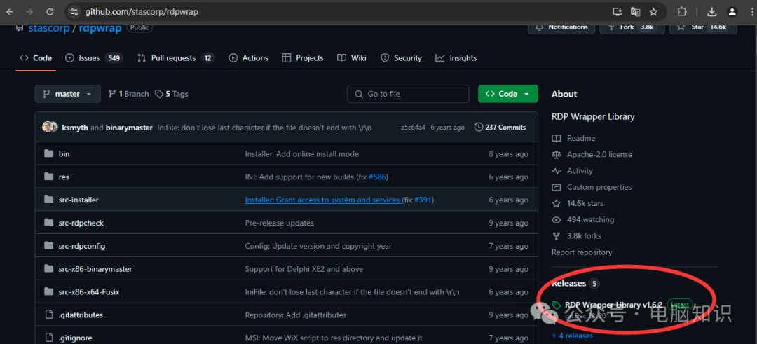 下载最新的RDP Wrapper补丁文件,目前最新的是V1.6.2。