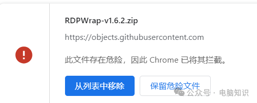 注意:在下载过程中,某些浏览器可能会提示文件存在风险。请放心,这是因为RDP Wrapper是一个第三方工具,用于修改系统配置。你可以选择保留文件,并使用杀毒软件进行扫描以确保安全。