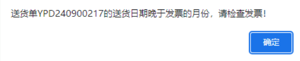 点晴模切ERP-弹出提示:送货日期晚于发票的月份,请检查发票!