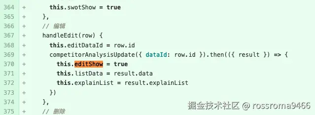 下面的代码中,用户点击编辑按钮时,会先发起一个异步请求,拿到数据结果后再显示弹窗。这个短暂且没有任何提示的等待,会让用户认为是程序卡顿,体验不畅,间接诱导用户重复点击按钮。
