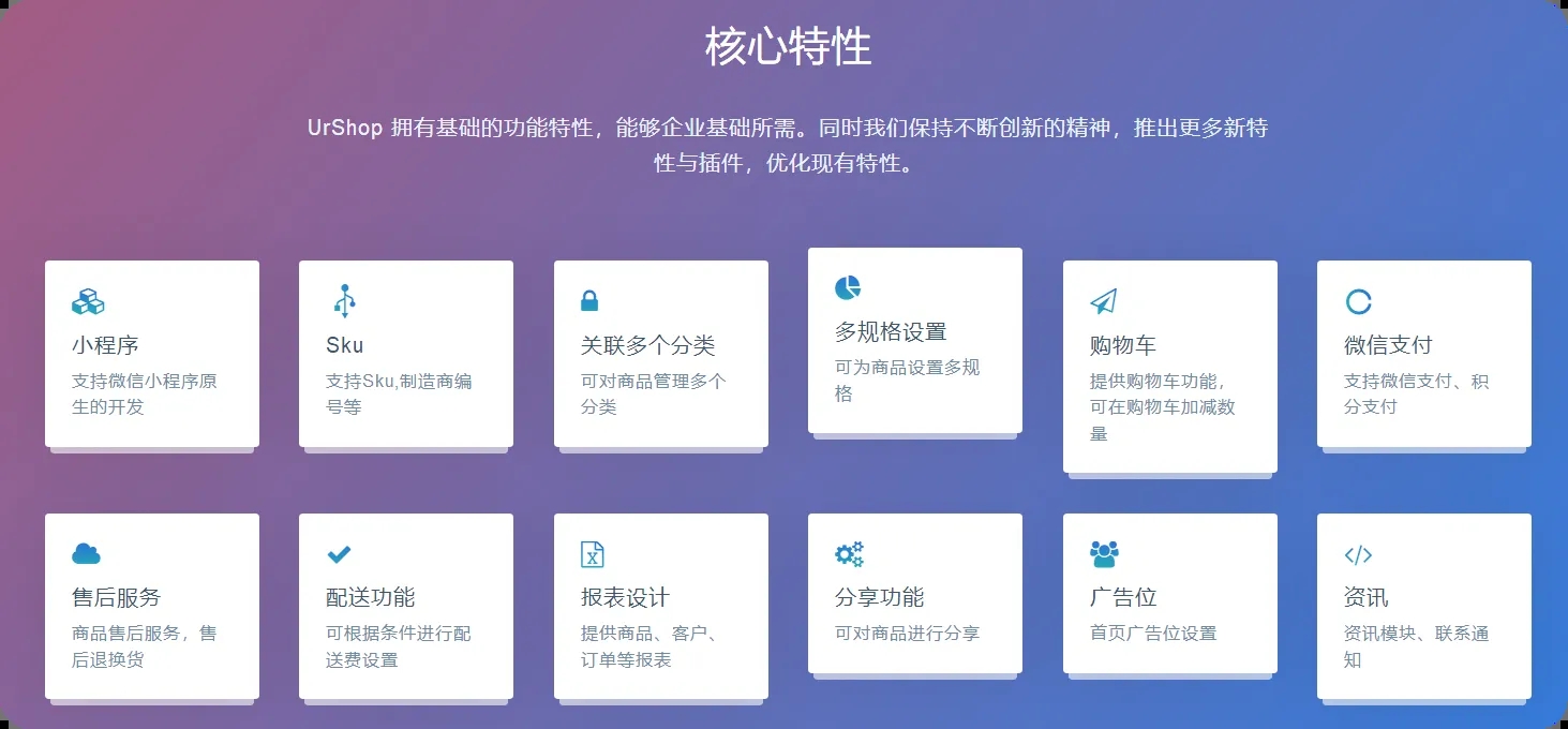 基础功能之外:UrShop 提供基础的商城功能,并通过持续迭代,增加更多插件,使小程序开发更加便捷。