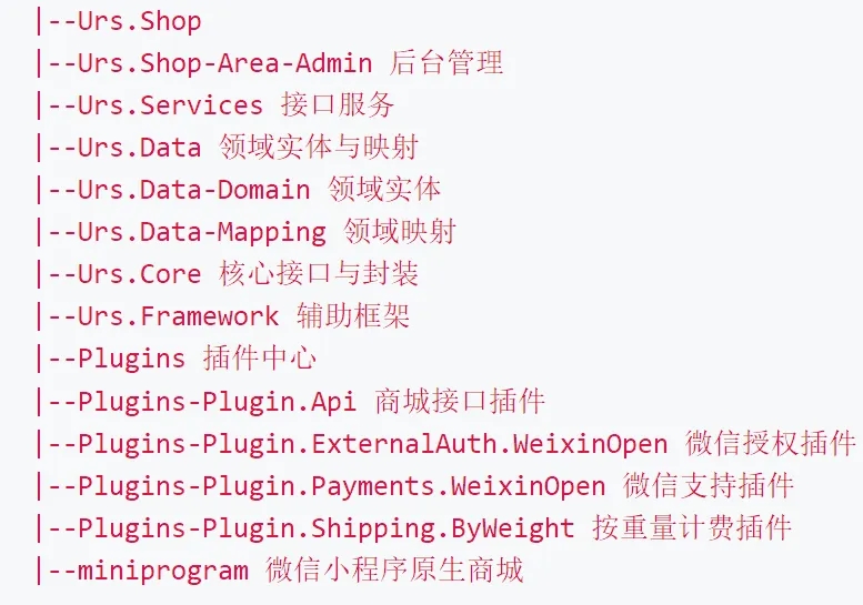 UrShop项目采用了模块化的目录结构,主要包括以下几个部分: