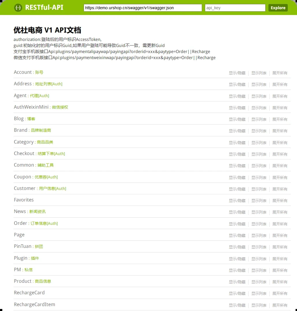 通过详细的 API 文档,可以快速掌握优社电商 V1 的各项功能,并在开发过程中可以使用,帮助我们快速了解项目接口。