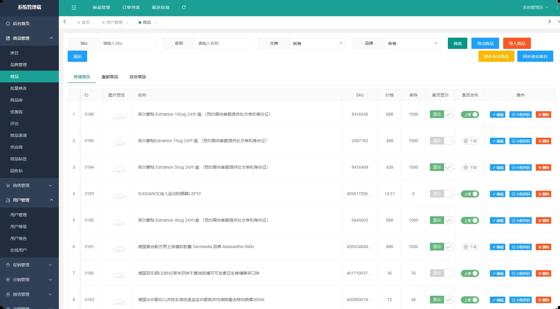 • 提供每种产品的重量、长宽高设置,便于计算物流费用。