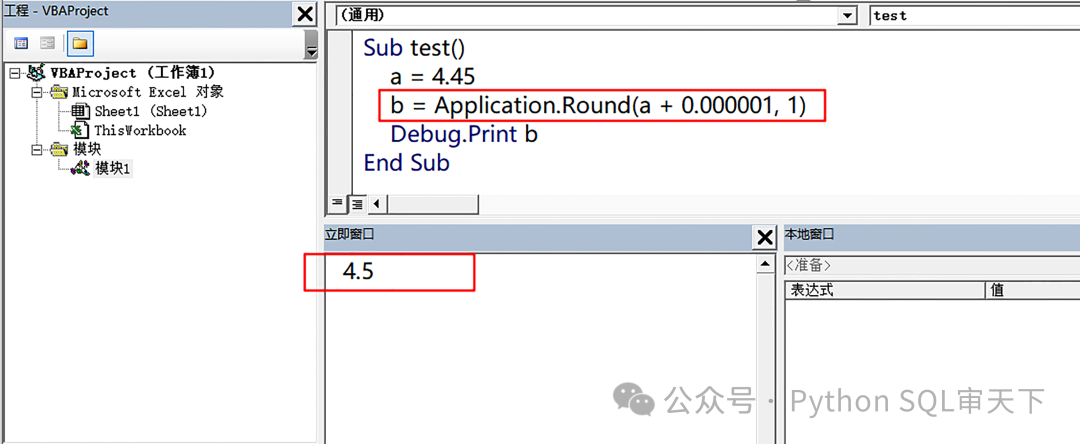 上面的都好理解,但是如果在VBA中使用内置的Round函数,结果就有所不同啦,这就是我遇到的坑。