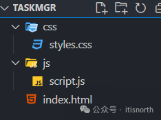 taskmgr/ ├── css/ │ └── styles.css ├── js/ │ └── script.js └── index.html