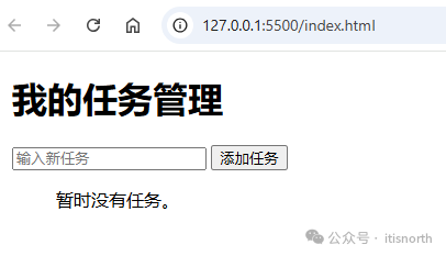 刷新页面的话,会看到下方多了一行文字 “暂时没有任务。”,表明 JS 代码工作了。