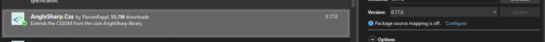 首先,通过 NuGet 包管理器安装 AngleSharp: