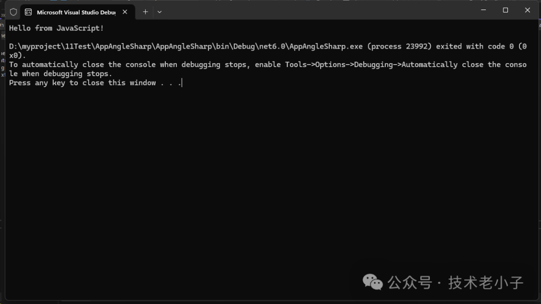var result = document.GetElementById("result");    Console.WriteLine(result.TextContent); // 输出: Hello from JavaScript!}