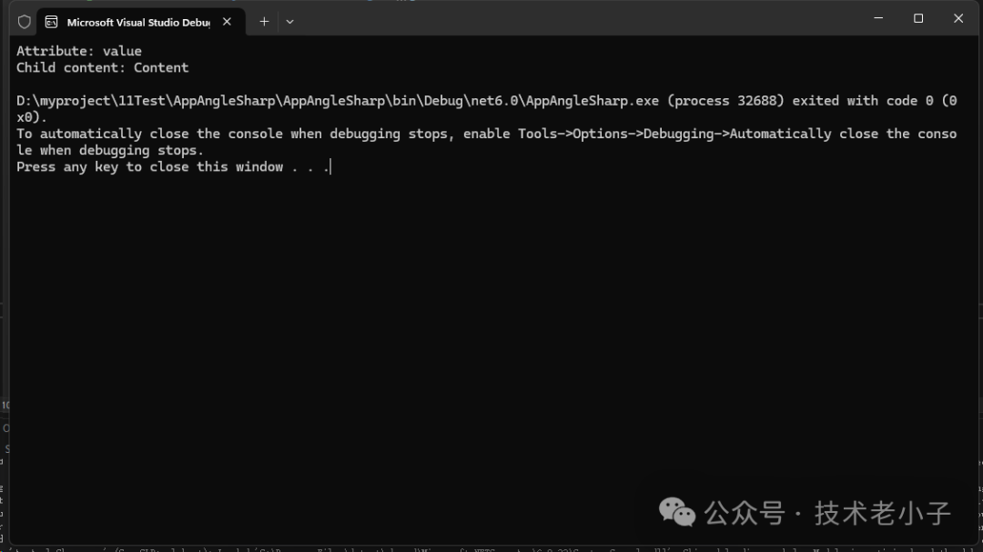 Console.WriteLine($"Attribute: {attribute}");    Console.WriteLine($"Child content: {childContent}");}