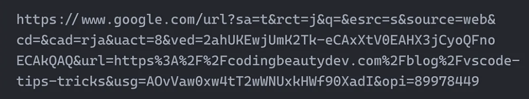 第一代追踪:URL 重定向方案最初的追踪方案相对简单直接。当用户从搜索结果页面复制链接时,会得到类似这样的 URL:
