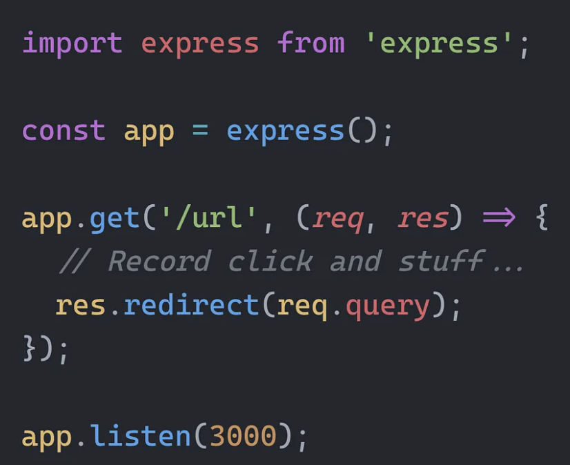 这个 URL 会在后台记录用户的点击行为,然后快速重定向到目标页面。实现原理如下: