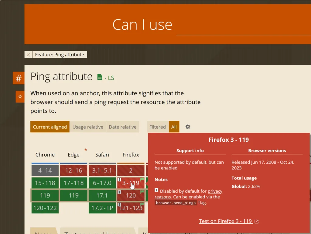 第二代追踪:Ping 属性方案为了解决重定向造成的延迟问题,谷歌采用了更现代的解决方案 - HTML5 的