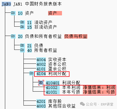 资产负债表特殊维护点: 如果损益表中净利润为正,则系统自动将结果其放入 41032 本年利润 净值结果:利润;如果损益表中净利润为负,则系统自动将结果其放入 41031 本年亏损 净值结果:亏损;数据体现在资产负债表中的未分配利润表项;