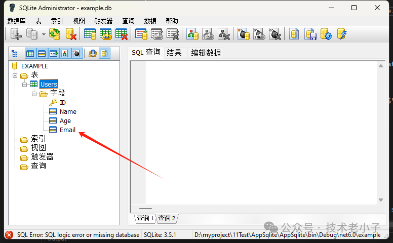 // 添加列            AddColumn(connection, "Users", "Email TEXT");