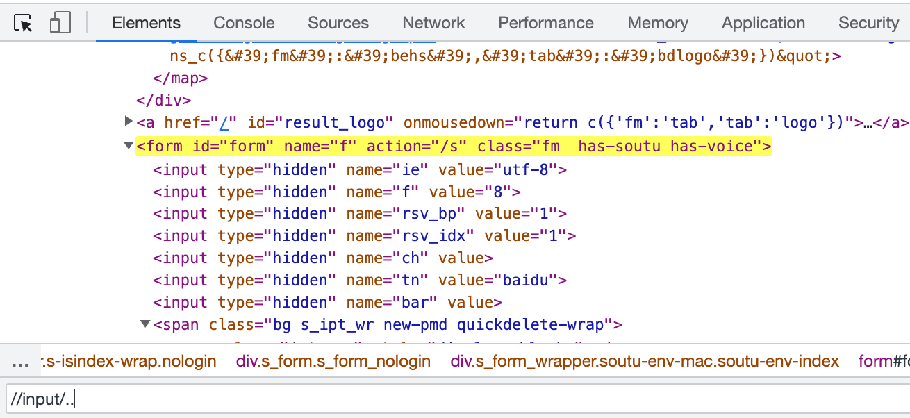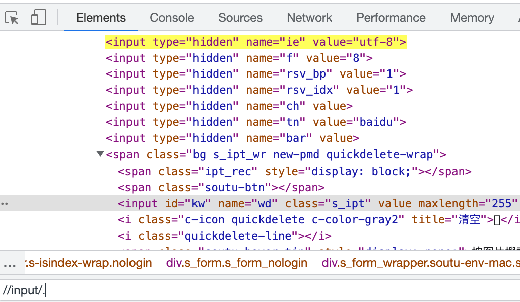 这个路径就是依次往下的路径,/html是根节点下第一个标签,随后去找到html标签下的body,依次找,最后找到input标签。